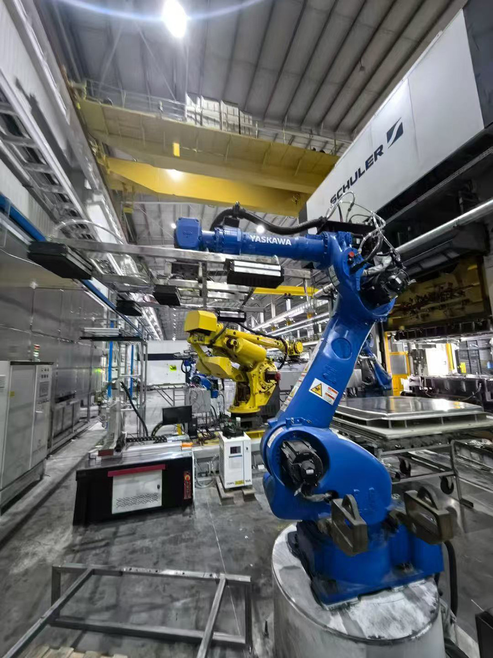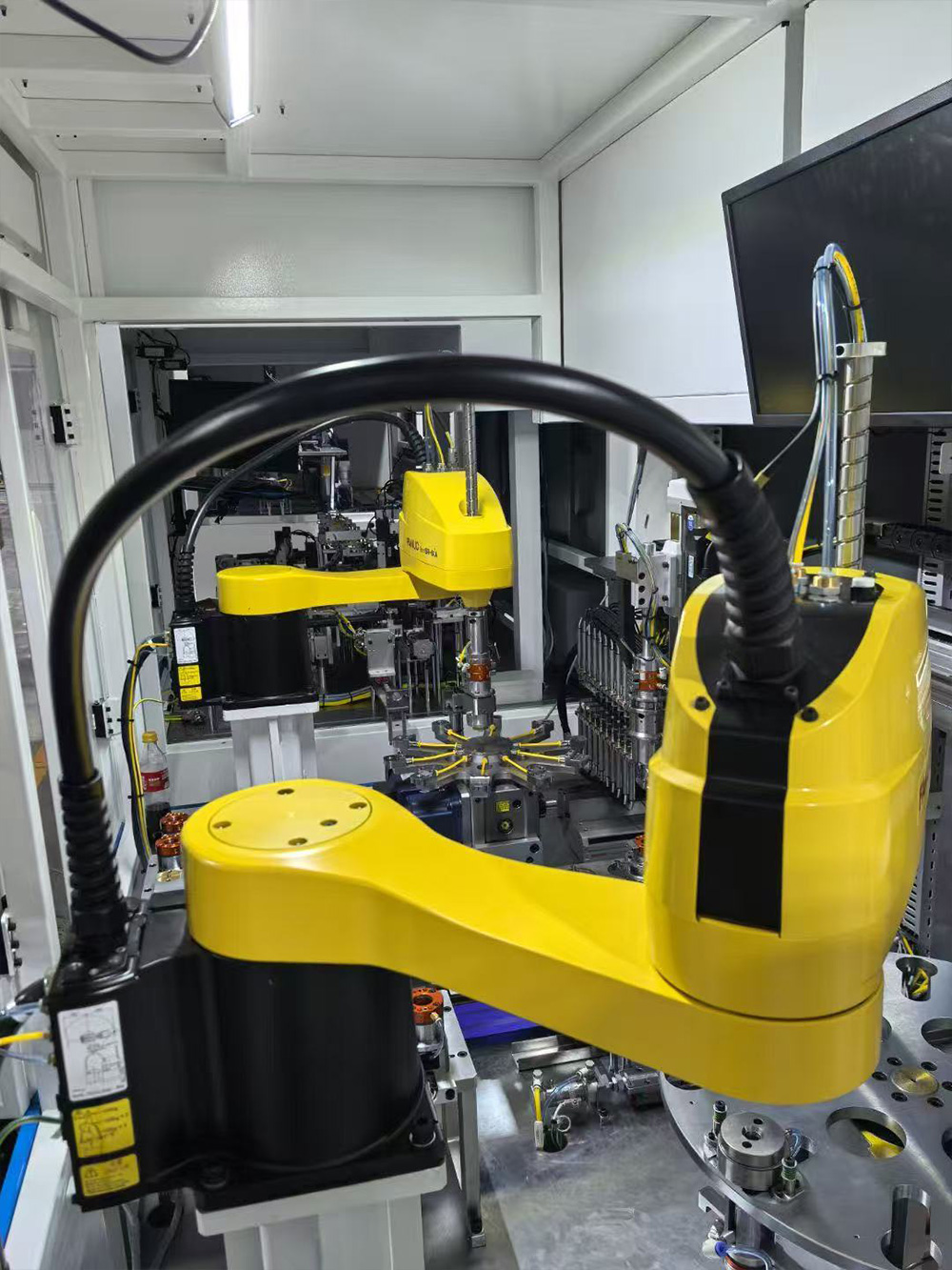 機(jī)器人自動(dòng)上下料是指通過(guò)工業(yè)機(jī)器人實(shí)現(xiàn)工件在加工設(shè)備(如機(jī)床、注塑機(jī)等)與物料臺(tái)之間的自動(dòng)化裝卸作業(yè),是智能制造生產(chǎn)線的關(guān)鍵環(huán)節(jié)。該系統(tǒng)主要由工業(yè)機(jī)器人、視覺檢測(cè)系統(tǒng)、抓取夾具、物料輸送線及控制系統(tǒng)組成:機(jī)器人搭載專用夾具(如真空吸盤、機(jī)械爪)精準(zhǔn)抓取工件,視覺系統(tǒng)對(duì)物料位置、姿態(tài)進(jìn)行實(shí)時(shí)檢測(cè)與校正,確保上下料精度;控制系統(tǒng)協(xié)調(diào)機(jī)器人與加工設(shè)備的動(dòng)作時(shí)序,實(shí)現(xiàn)全流程自動(dòng)化。